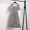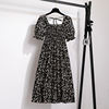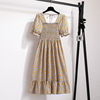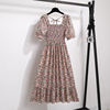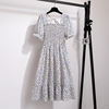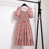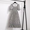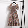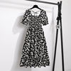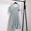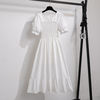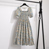 Summer Pleated Women Chiffon Dresses Casual Beach Holiday Short Sleeve Square Collar Woman Midi Dress Bohemian Mujer Vestidos
